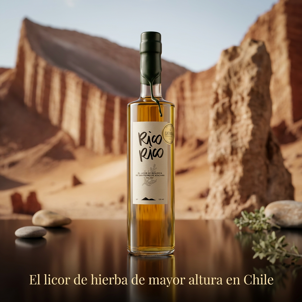 En el corazón del desierto de Atacama nace Rico Rico, un licor chileno artesanal elaborado a partir de la rica-rica (Acantholippia deserticola), una hierba aromática ancestral utilizada por el pueblo Lickanantai en infusiones digestivas y medicinales.