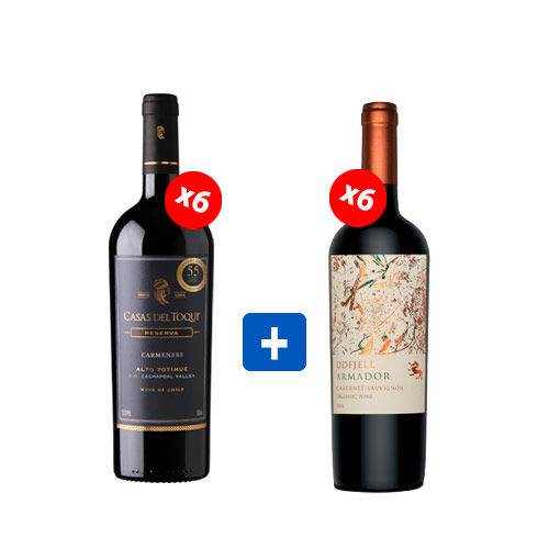 Pack 6 botellas Armador Odjfell Cabernet Sauvignon + 6 Casas del Toqui Reserva Carmenere ($3.990 c/u)