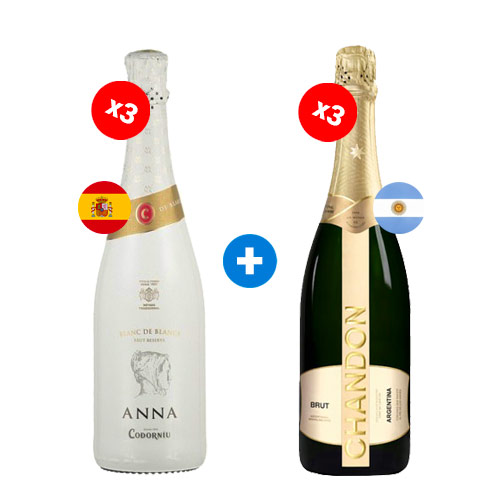 Pack de 3 Espumantes Chandon Brut +3 Cava Anna Codorniu Brut Reserva Blanc de Blancs ($9.990 c/u) Semanal