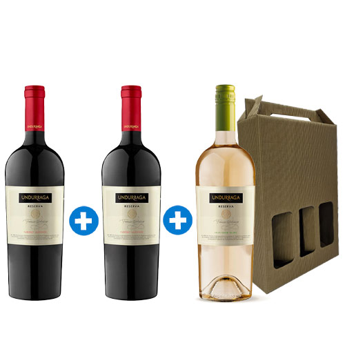 Pack 2 botellas Undurraga Reserva Cabernet Sauvignon + 1 Undurraga Reserva Sauvignon Blanc + Caja de cartón 3 botellas (R)